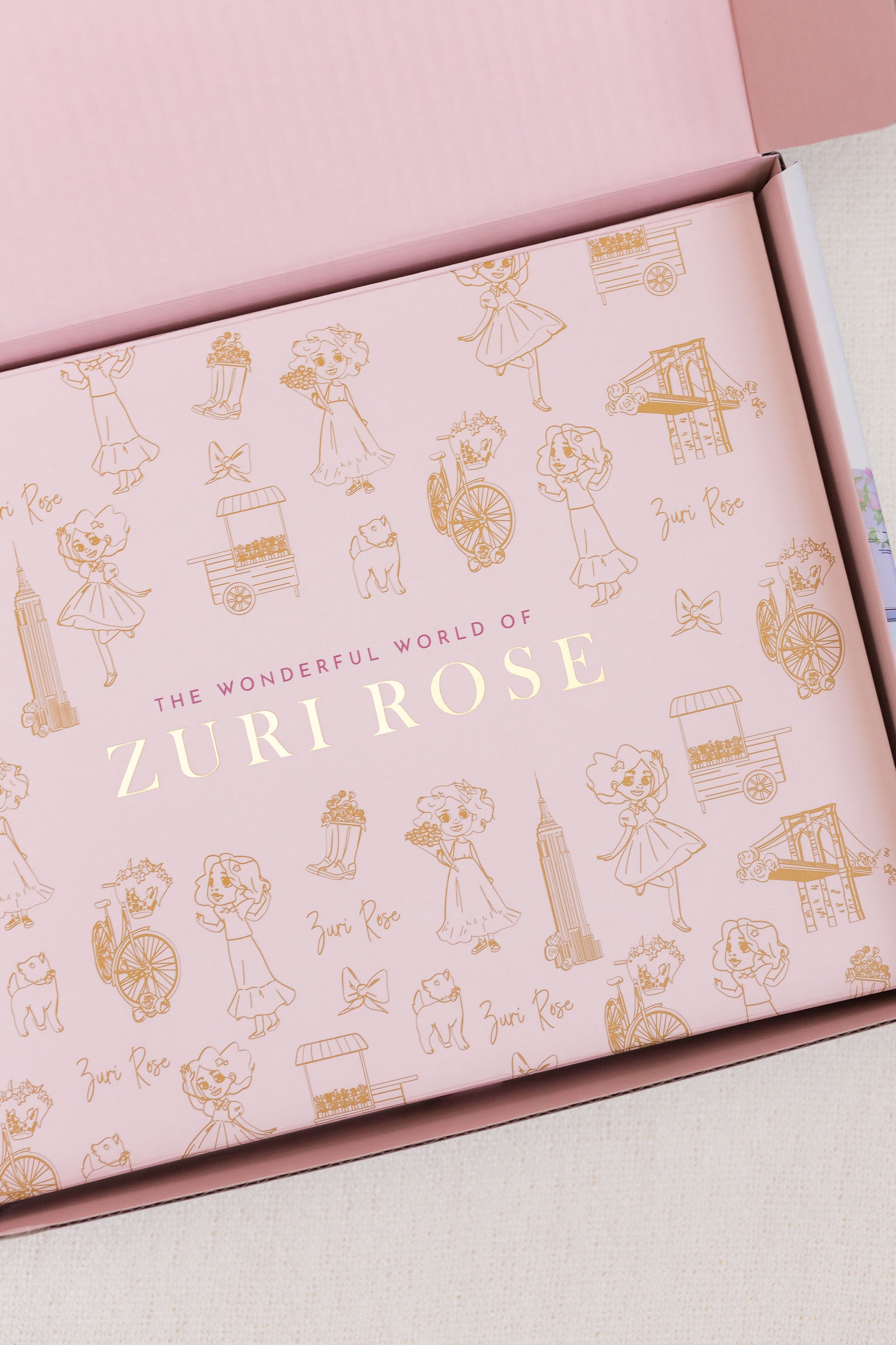 Whether you're gifting the Zuri Rose book or looking to store your copy as a keepsake, this magnetic box is the perfect decorative solution. The box is matte, blush pink with gold foil and includes custom tissue paper. It measures 11.5" x 9.5"