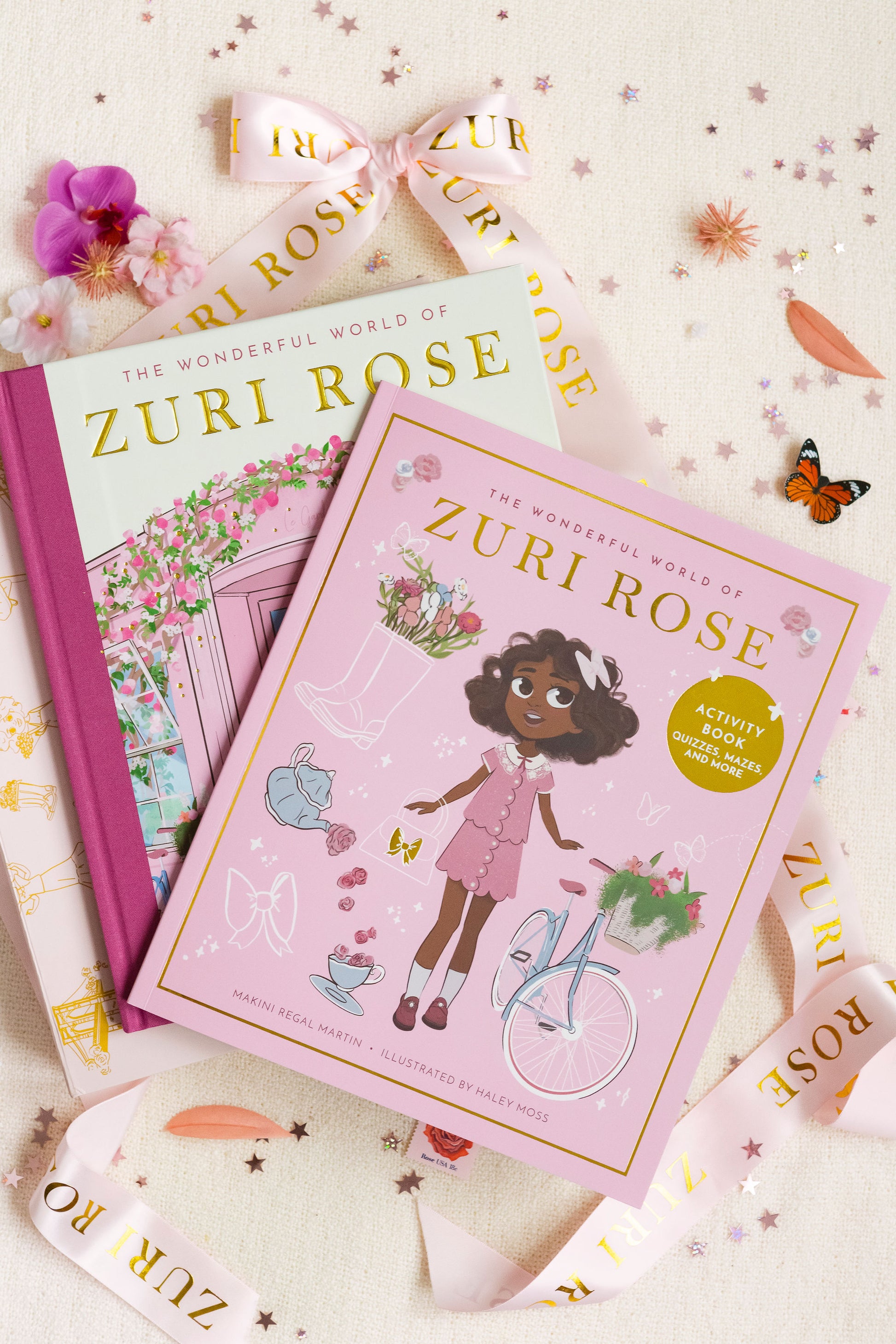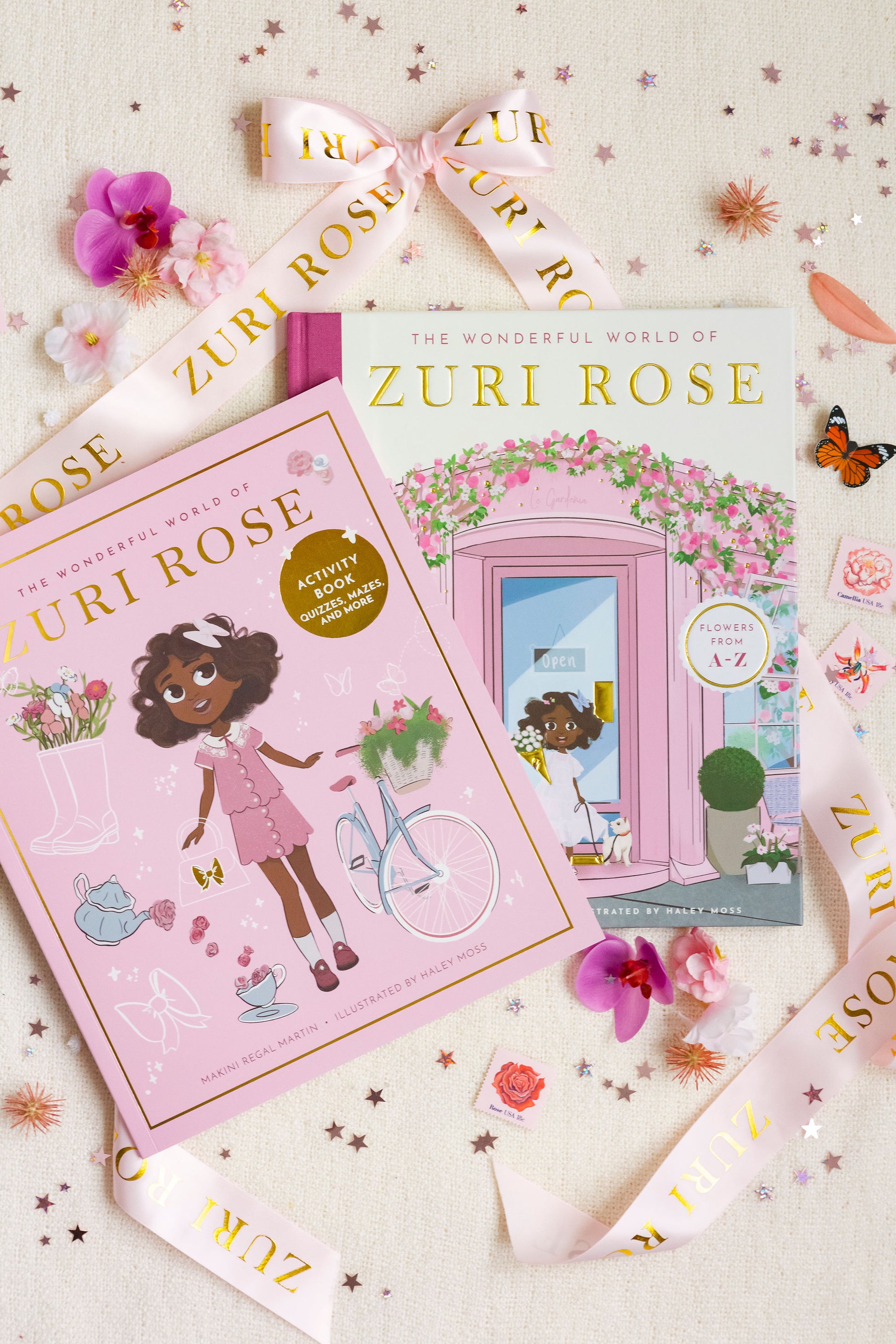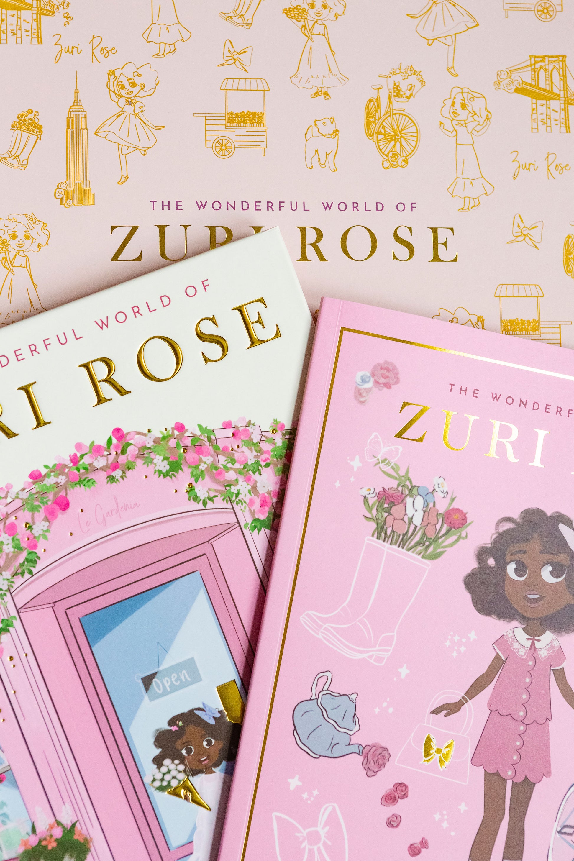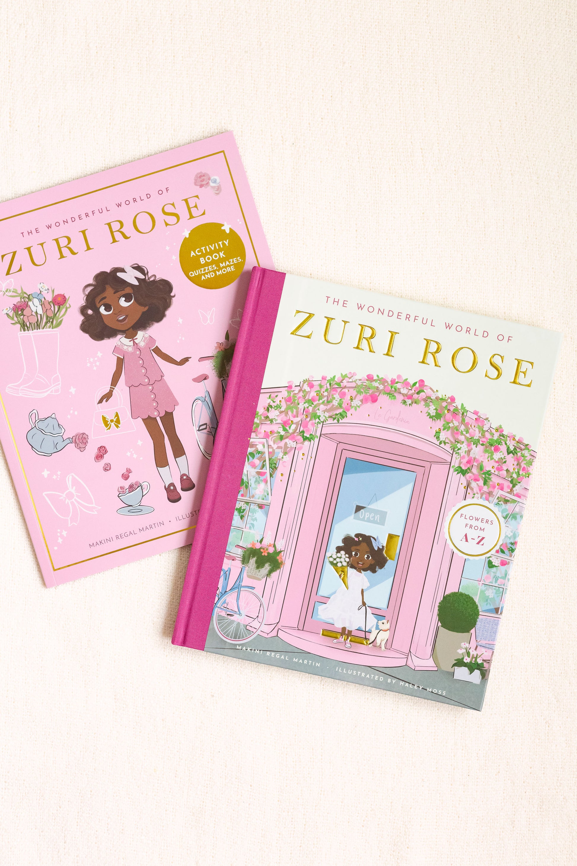 The set includes two books from our Zuri Rose book series: a first edition, hardcover copy of The Wonderful World of Zuri Rose: Flowers A to Z, and our softcover activity book. Both books come in a Zuri Rose magnetic gift box with gold foil.